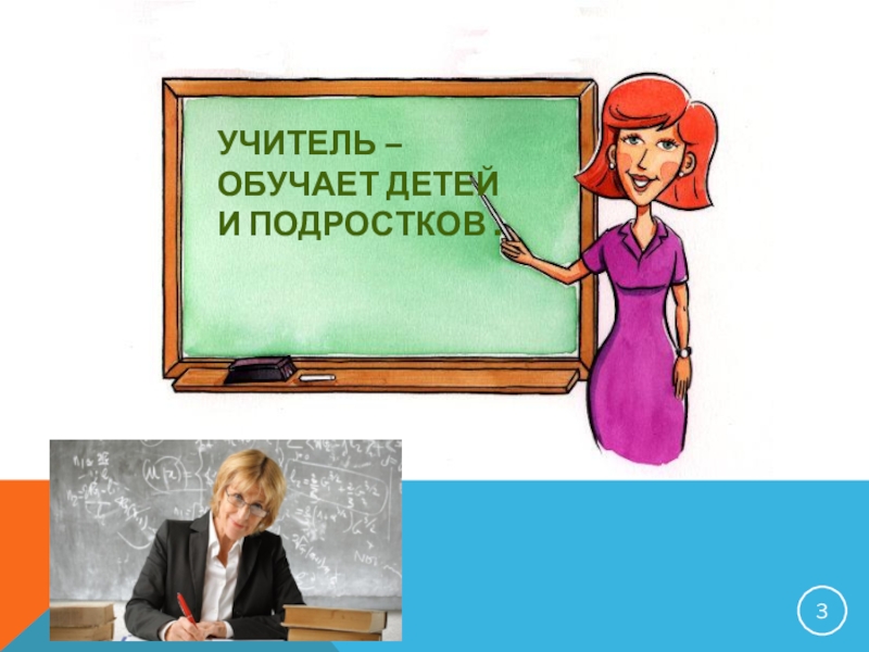 Слайд 3Учитель – обучает детей и подростков .