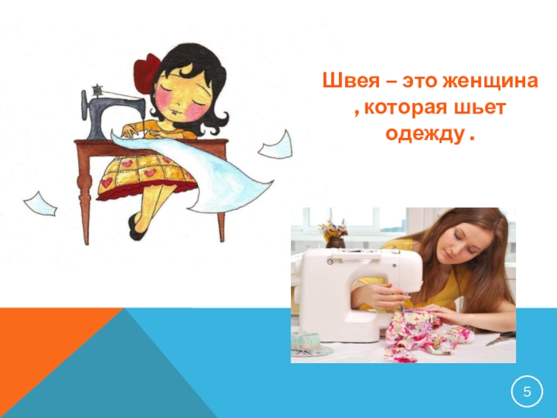Слайд 5Швея – это женщина , которая шьет одежду .