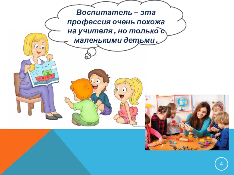 Слайд 4Воспитатель – эта профессия очень похожа на учителя , но только