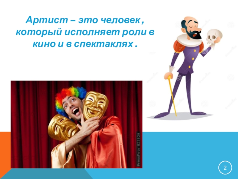 Слайд 2Артист – это человек , который исполняет роли в кино и
