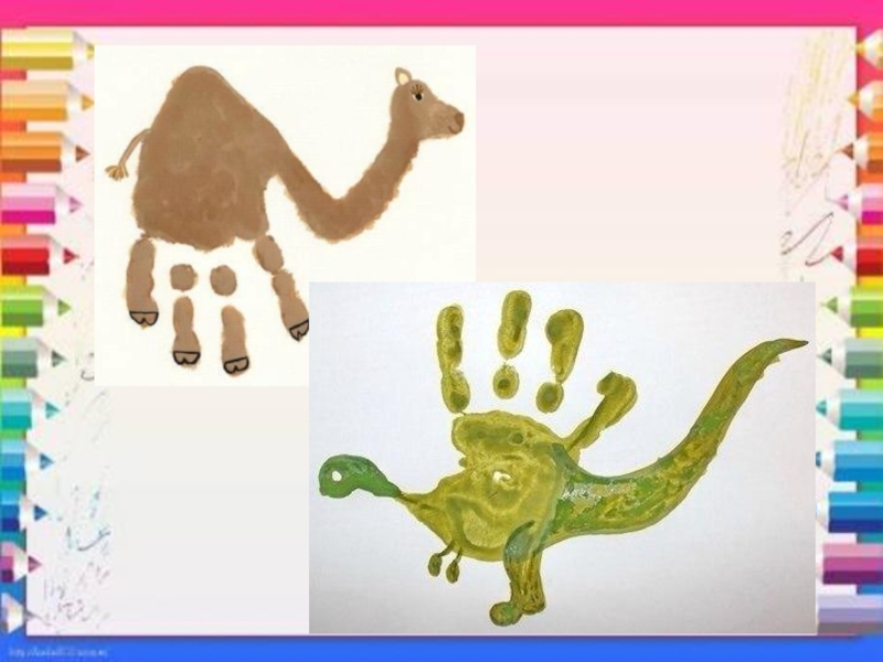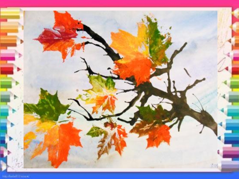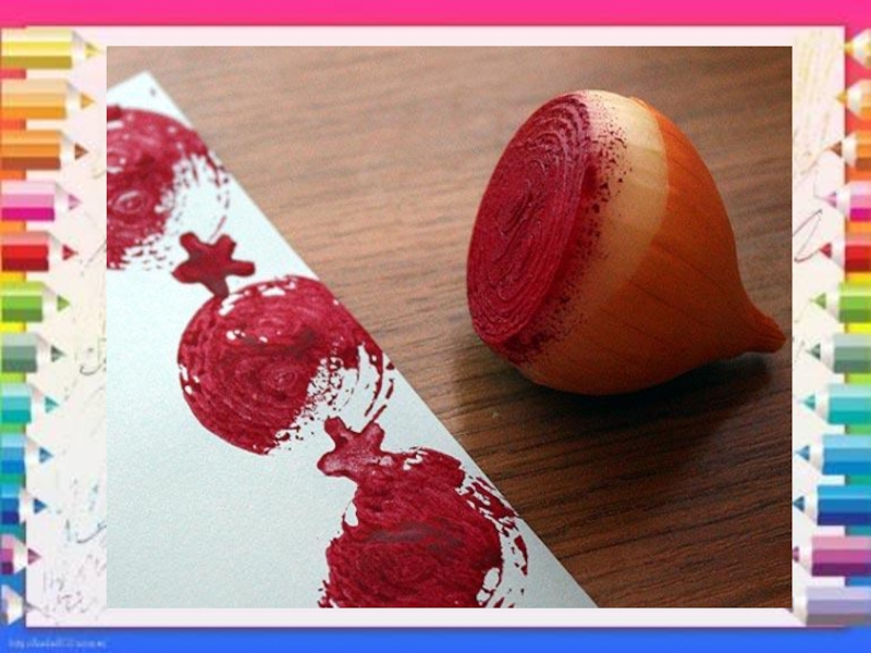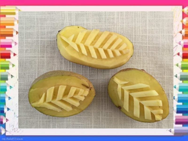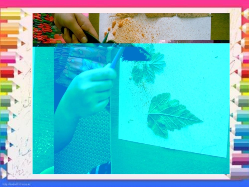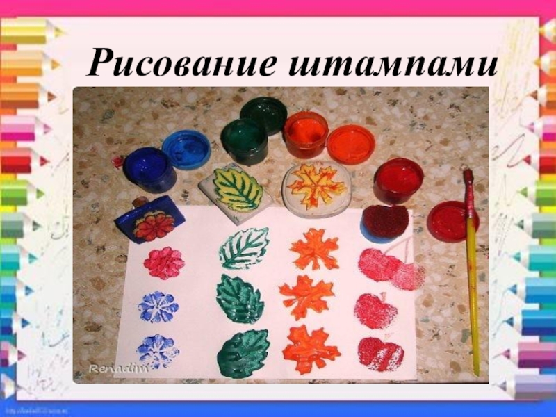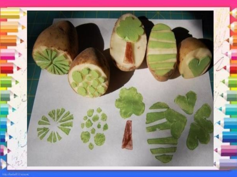 оттиск печатками из ластика, листьев
