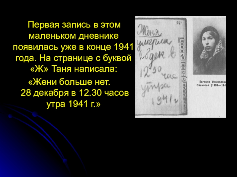в конце 1941 года. На странице с буквой «Ж» Таня написала: