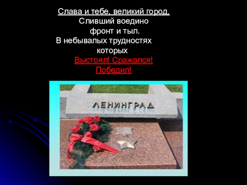 Слайд 28Памятник на площади Победы –героическим защитникам Ленинграда.