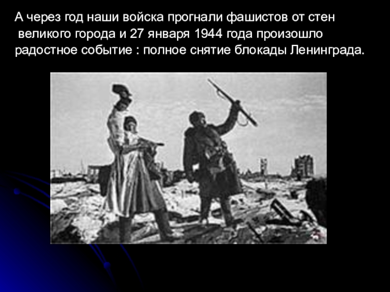 Слайд 21А через год наши войска прогнали фашистов от стен