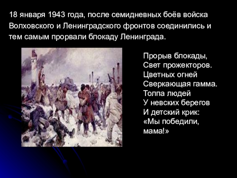 Слайд 2018 января 1943 года, после семидневных боёв войска