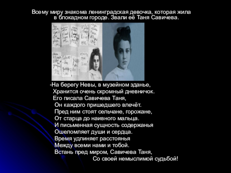 Слайд 15Всему миру знакома ленинградская девочка, которая жила
