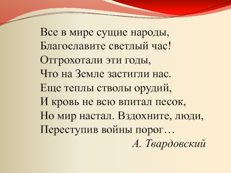 Но мир настал. Вздохните, люди,