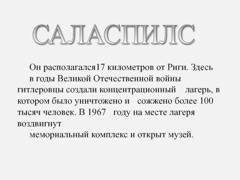 Он располагался17 километров от Риги. Здесь