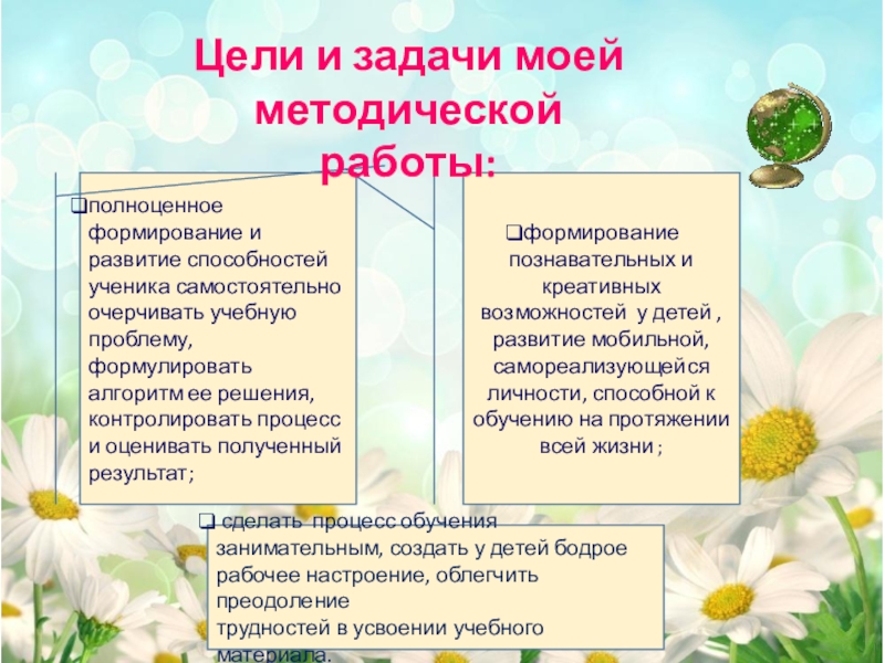 формирование познавательных и креативных возможностей у детей , развитие мобильной, самореализующейся личности, способной к обучению на протяжении всей жизни ;