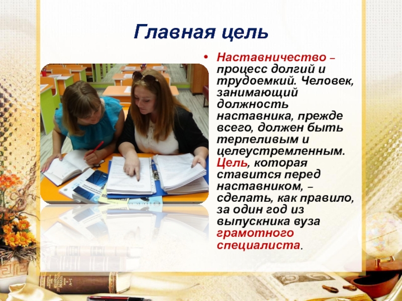 прежде всего, должен быть терпеливым и целеустремленным. Цель, которая ставится перед наставником, – сделать, как правило, за один год из выпускника вуза грамотного специалиста.