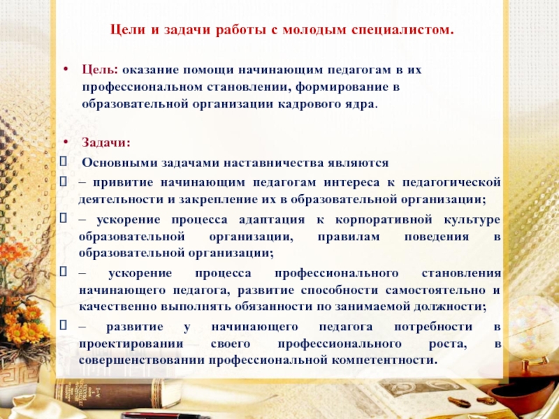 Слайд 4Цели и задачи работы с молодым специалистом.