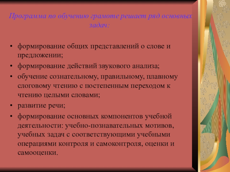 Слайд 11Программа по обучению грамоте решает ряд основных задач: