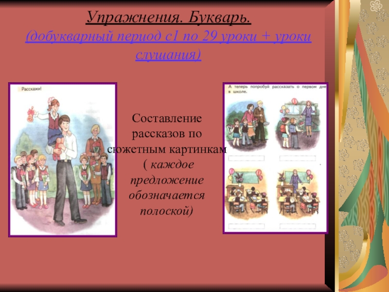 (добукварный период с1 по 29 уроки + уроки слушания)