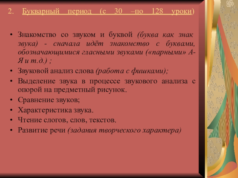 Слайд 182. Букварный период (с 30 –по 128 уроки)