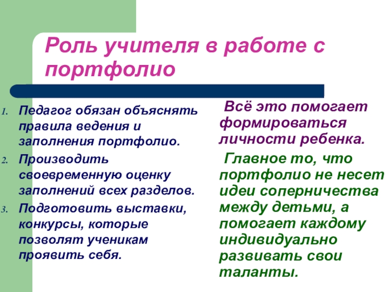 Главное то, что портфолио не несет идеи соперничества между детьми, а помогает каждому индивидуально развивать свои таланты.