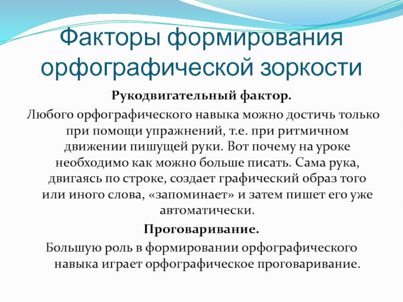 Слайд 8Факторы формирования орфографической зоркости