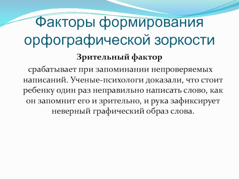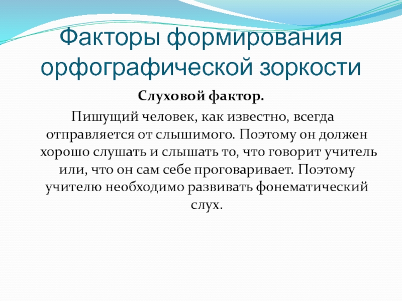 Слайд 6Факторы формирования орфографической зоркости