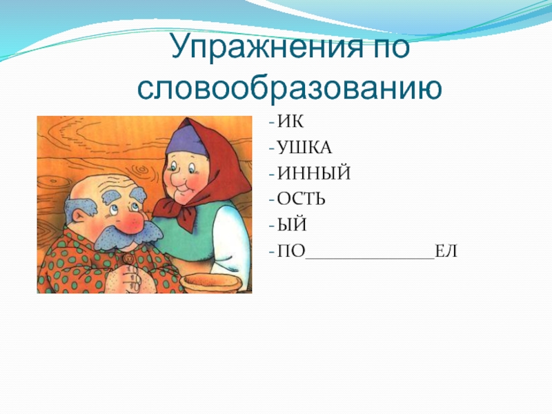 Слайд 15Упражнения по словообразованию