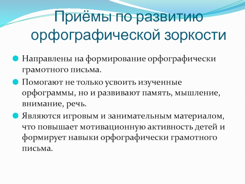 Слайд 11Приёмы по развитию орфографической зоркости
