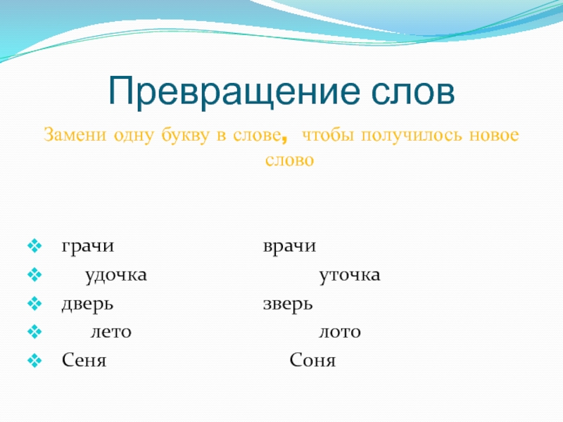 Слайд 16Превращение слов