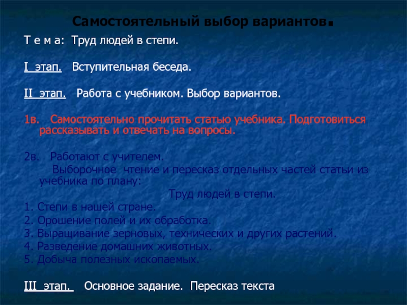 II этап. Работа с учебником. Выбор вариантов.