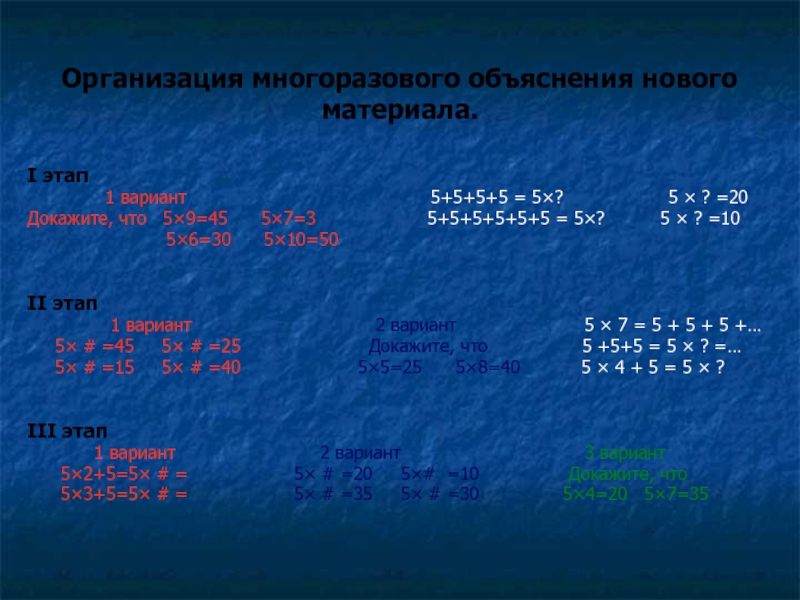 1 вариант 2 вариант 5 × 7 = 5 + 5 + 5 +…