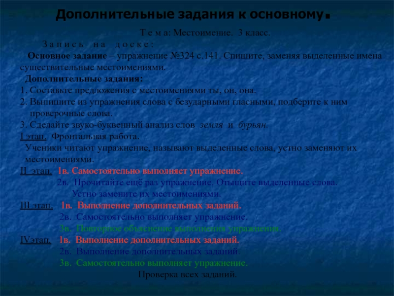 Основное задание – упражнение №324 с.141. Спишите, заменяя выделенные имена