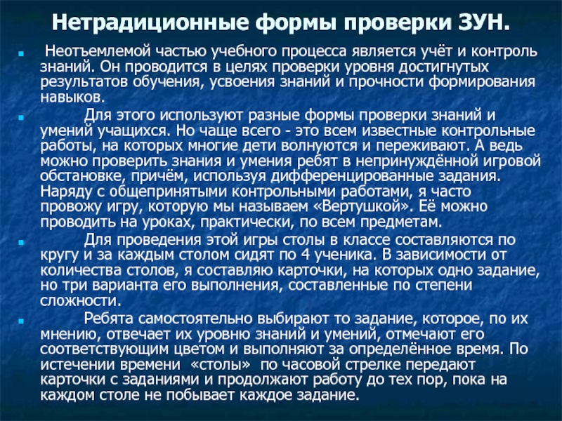 Слайд 20Нетрадиционные формы проверки ЗУН.