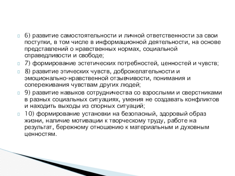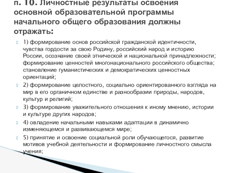 п. 10. Личностные результаты освоения основной образовательной программы начального общего образования должны отражать: