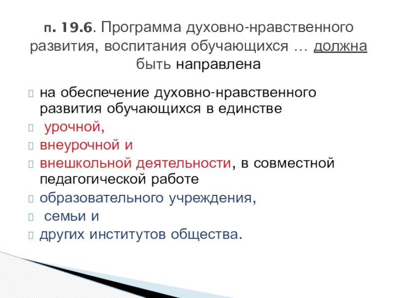 п. 19.6. Программа духовно-нравственного развития, воспитания обучающихся … должна быть направлена