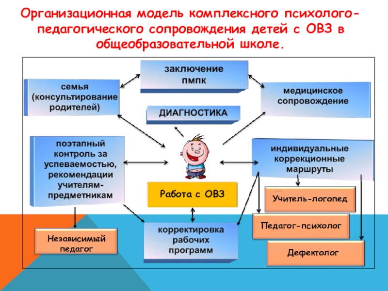 Слайд 25Организационная модель комплексного психолого-педагогического сопровождения детей с ОВЗ в общеобразовательной школе.