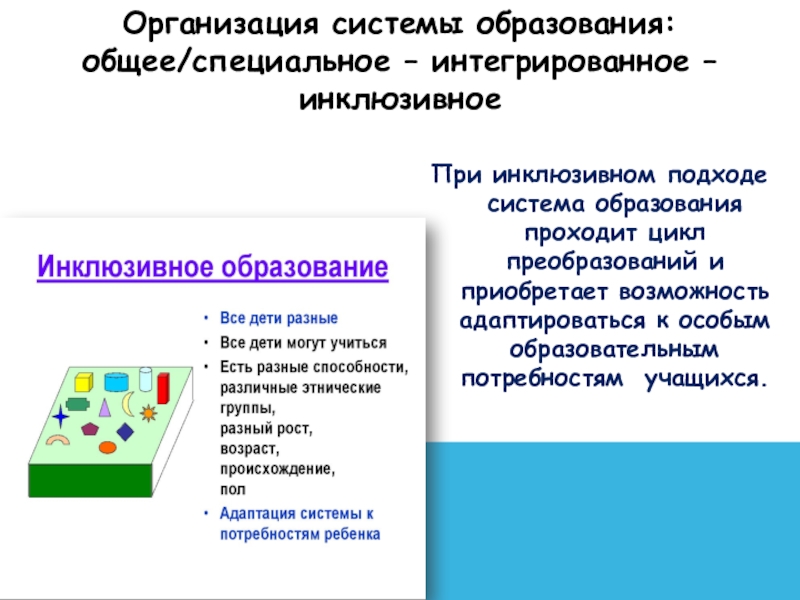 образования проходит цикл преобразований и приобретает возможность адаптироваться к особым образовательным потребностям учащихся.
