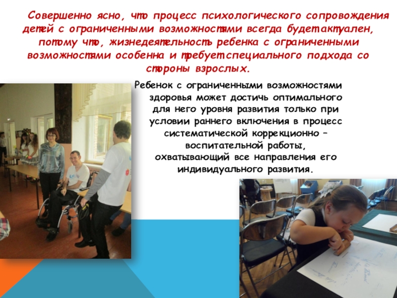 Слайд 14 Совершенно ясно, что процесс психологического сопровождения детей с ограниченными возможностями всегда