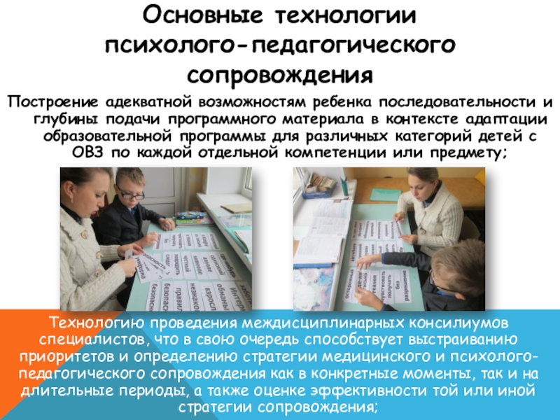 Технологию проведения междисциплинарных консилиумов специалистов, что в свою очередь способствует выстраиванию приоритетов и определению стратегии медицинского и психолого-педагогического сопровождения как в конкретные моменты, так и на длительные периоды, а также оценке эффективности той или иной стратегии сопровождения;