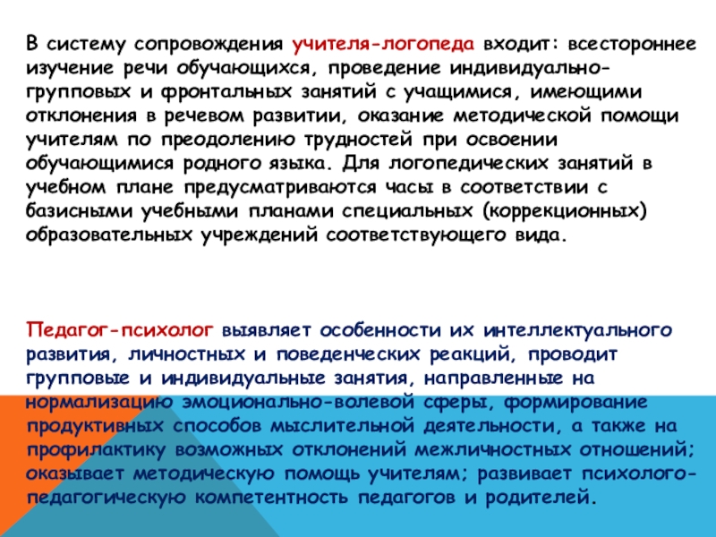 В систему сопровождения учителя-логопеда входит: всестороннее изучение речи обучающихся, проведение индивидуально-групповых