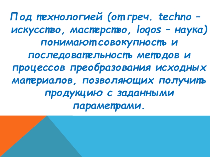 Слайд 16Под технологией (от греч. techno – искусство, мастерство, loqos – наука)