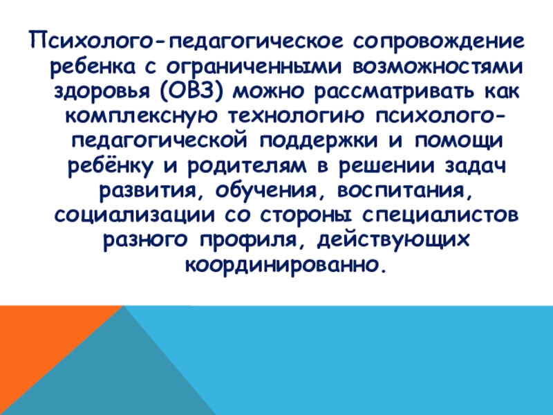 Слайд 15Психолого-педагогическое сопровождение ребенка с ограниченными возможностями здоровья (ОВЗ) можно рассматривать как