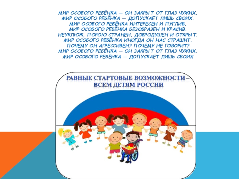 Слайд 2Мир особого ребёнка — он закрыт от глаз чужих.