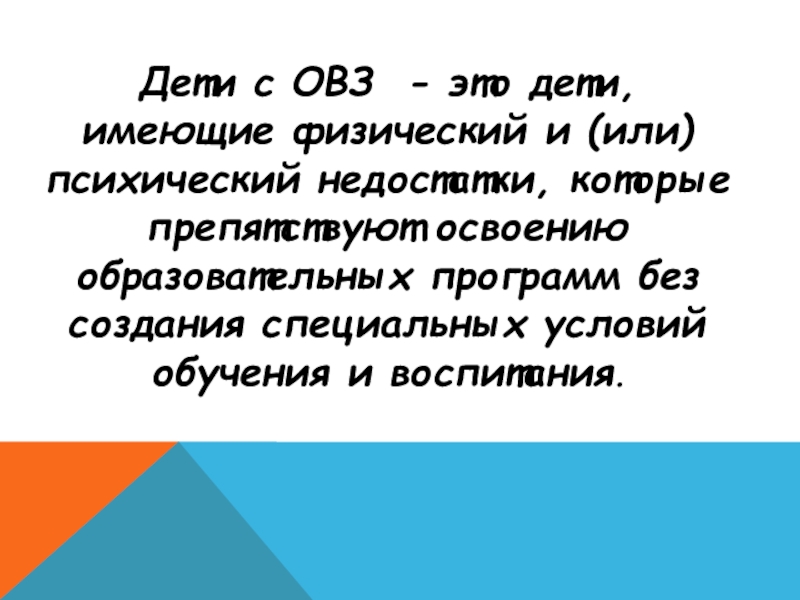 Слайд 3Дети с ОВЗ - это дети, имеющие физический и (или) психический