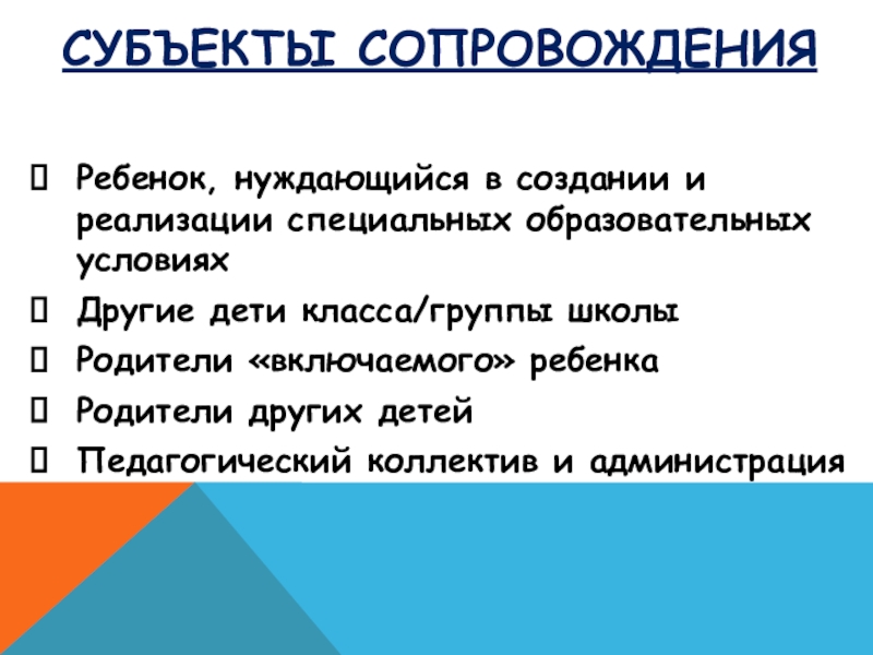 Слайд 9СУБЪЕКТЫ СОПРОВОЖДЕНИЯ