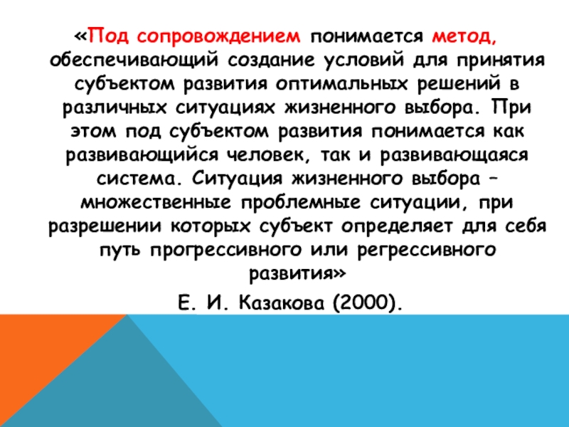 Слайд 8«Под сопровождением понимается метод, обеспечивающий создание условий для принятия субъектом развития