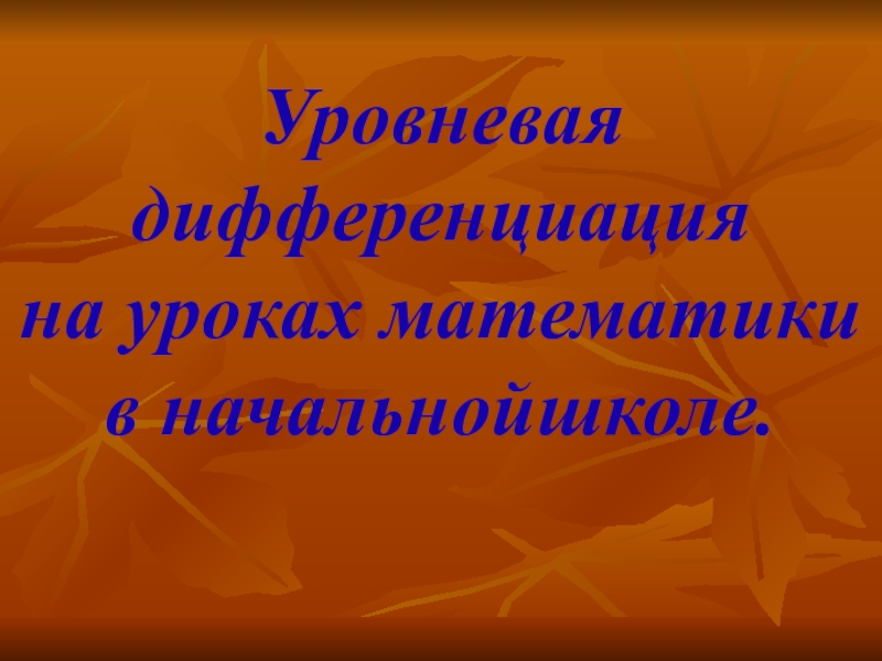 Слайд 1Уровневая дифференциация на уроках математики в начальнойшколе.