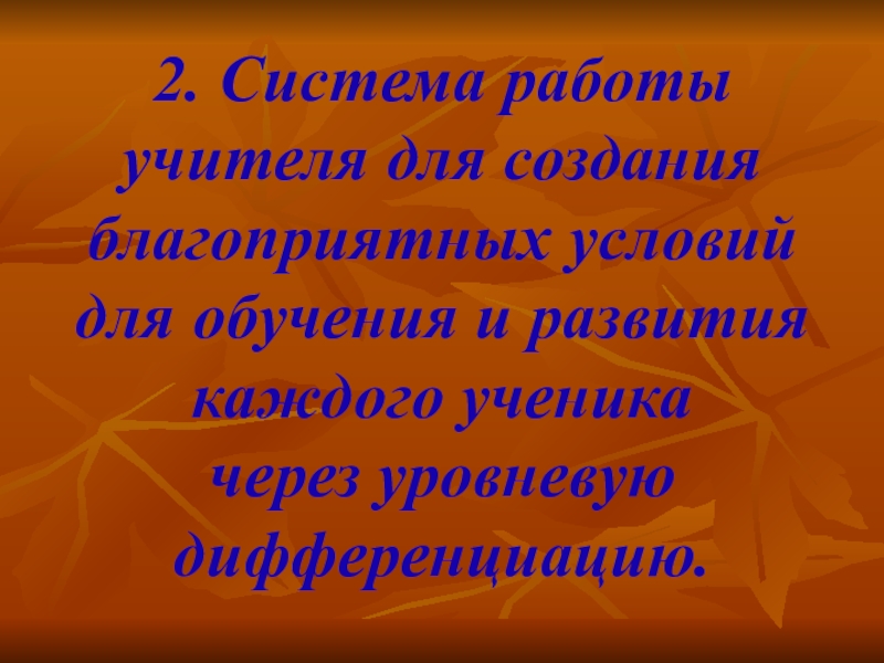 2. Система работы учителя для создания благоприятных условий для обучения и развития каждого ученика  через уровневую
