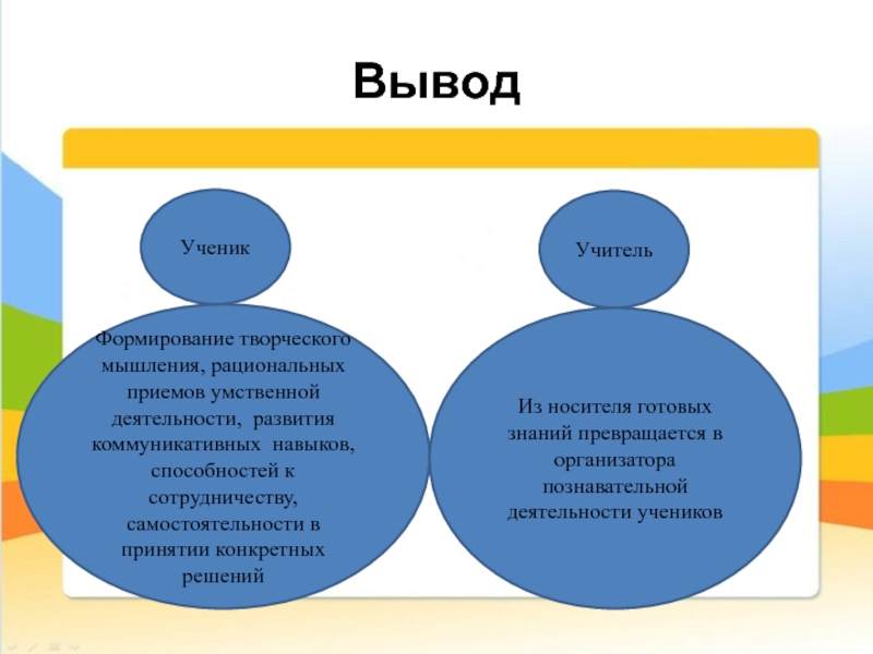 Учитель: консультирует, координирует работу учащихся, стимулирует их деятельность