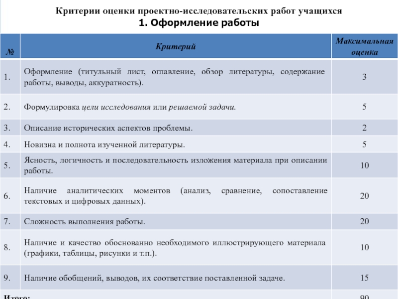 Слайд 17Критерии оценки проектно-исследовательских работ учащихся