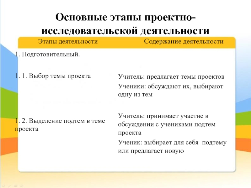 Слайд 7Основные этапы проектно-исследовательской деятельности