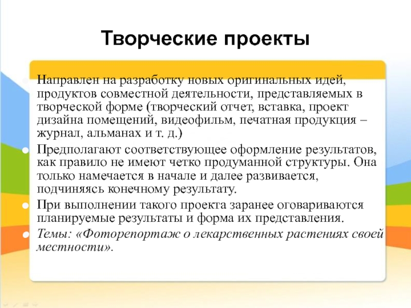 Слайд 12Творческие проекты