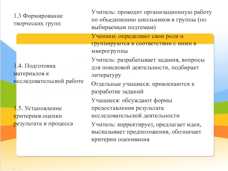 1.3 Формирование творческих групп