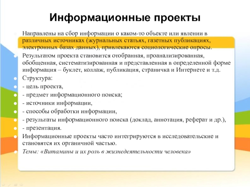 Слайд 13Информационные проекты