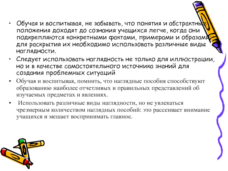 Слайд 5Обучая и воспитывая, не забывать, что понятия и абстрактные положения доходят